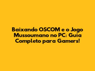 Baixe OSCOM E O Jogo Mussoumano No PC: Guia Completo!