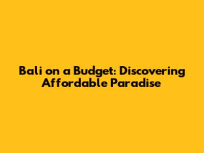 Bali On A Budget: Discovering Affordable Paradise