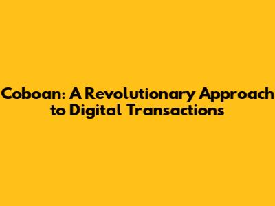 Coboan: A Revolutionary Approach To Digital Transactions