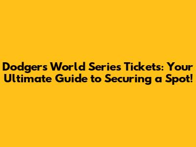 Dodgers World Series Tickets: Your Guide To Securing A Spot!