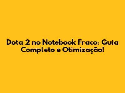 Dota 2 No Notebook Fraco: Guia Completo E Otimização!