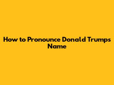 How To Pronounce Donald Trump's Name