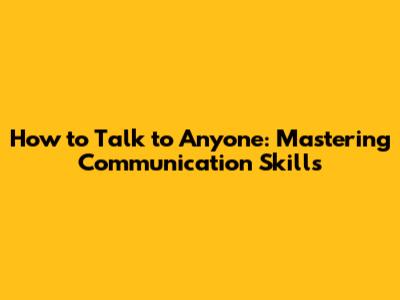 How To Talk To Anyone: Mastering Communication Skills
