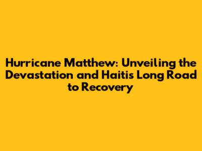 The long-term consequences of Hurricane Matthew underscore the need for sustained support and investment in Haiti. The country needs assistance to rebuild its infrastructure, strengthen its economy, and improve its resilience to future disasters. Addressing the long-term consequences requires a comprehensive approach, including investment in infrastructure, agriculture, healthcare, and education.