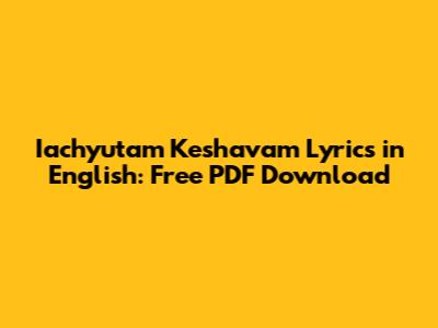 Hey everyone! If you're looking for the beautiful lyrics of "Iachyutam Keshavam" translated into English and want a free PDF download, you've come to the right place. This devotional song, often sung with deep reverence, holds a special place in the hearts of many. Understanding the lyrics can truly enhance the spiritual experience, allowing you to connect more deeply with the divine message. We're going to dive into what makes this song so special, provide you with the English lyrics, and guide you on how to get your hands on a free PDF version. So, grab a comfy seat, maybe a cup of chai, and let's explore the magic of "Iachyutam Keshavam" together.