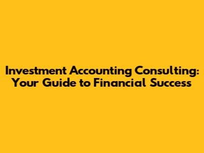 Investment Accounting Consulting: Your Guide To Financial Success