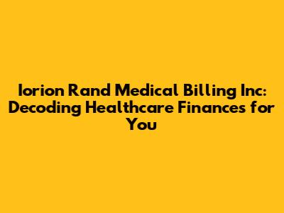 Iorion Rand Medical Billing: Your Guide To Healthcare Finances