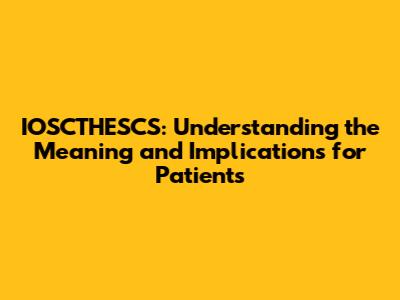 IOSCTHESCS: Meaning And Implications For Patients