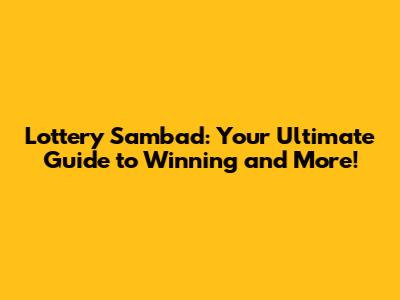 Lottery Sambad: Your Ultimate Guide To Winning And More!