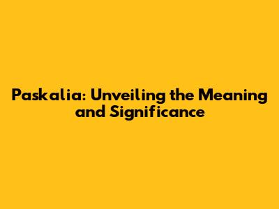 Paskalia: Unveiling The Meaning And Significance