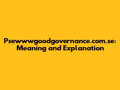 Psewwwgoodgovernance.com.se: Meaning And Explanation