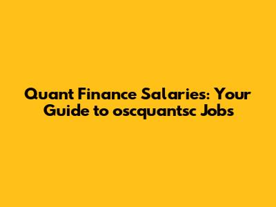 Quant Finance Salaries: Your Guide To Oscquantsc Jobs