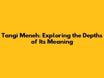 Tangi Meneh: A Deep Dive Into Meaning And Significance