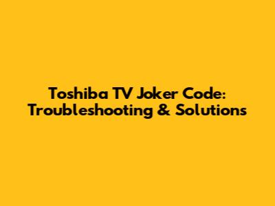 Toshiba TV Joker Code: Troubleshooting & Solutions