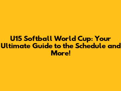 U15 Softball World Cup: Schedule, Teams, And What To Expect