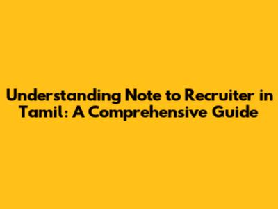 Understanding 'Note To Recruiter' In Tamil: A Comprehensive Guide