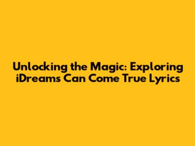 Unlocking The Magic: Exploring IDreams Can Come True Lyrics