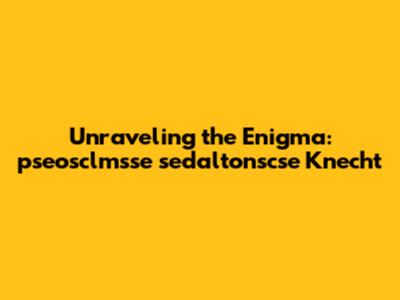 Unraveling The Mystery: Pseosclmsse Sedaltonscse Knecht