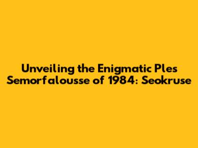 Unveiling The Enigmatic 'Ples Semorfalousse' Of 1984: Seokruse
