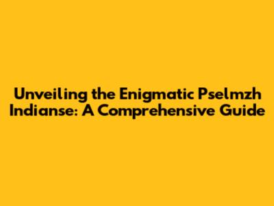 Unveiling The Enigmatic Pselmzh Indianse: A Comprehensive Guide