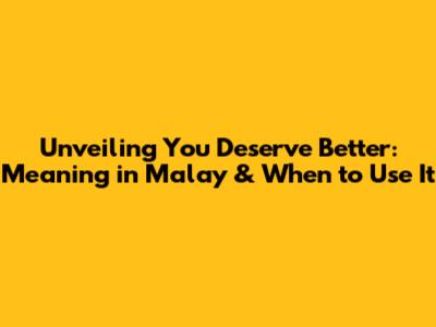 Unveiling 'You Deserve Better': Meaning In Malay & When To Use It